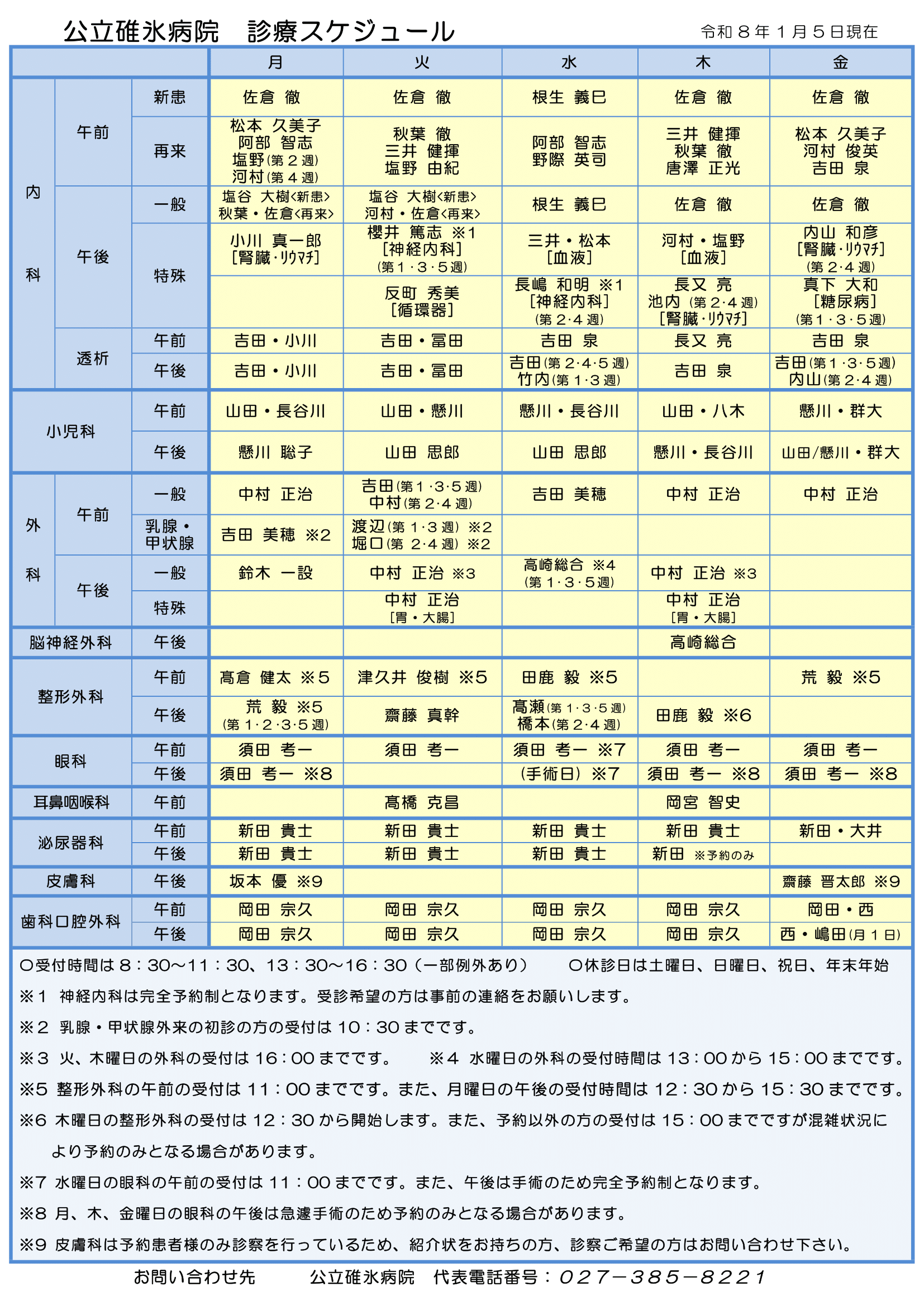 • 内科、外科の午後(一般)は初診の方も受診できます。