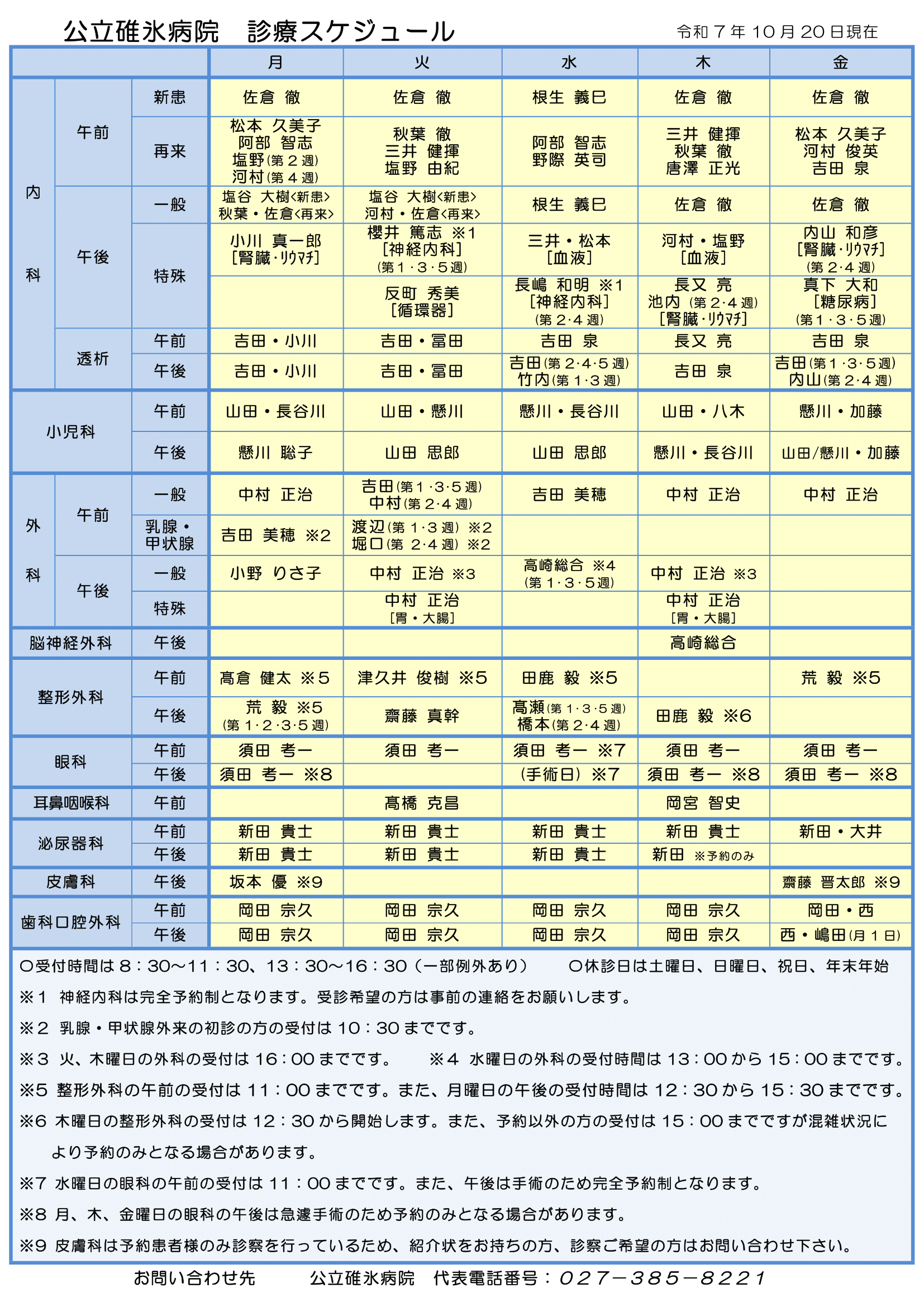 - 内科、外科の午後(一般)は初診の方も受診できます。