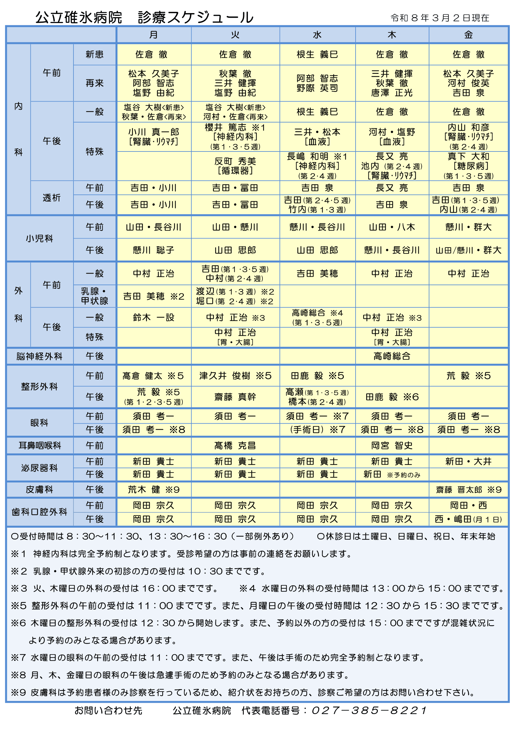 診療スケジュール
